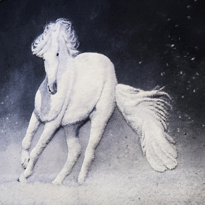 砂上を駆ける白馬を表現した「白」が映える作品です。
